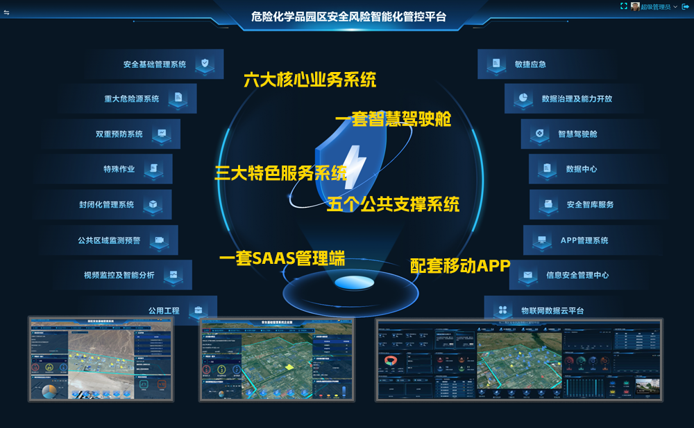 基于《对号危险化学品园区安全管控平台》实施建设的甘肃、吉林、四川等多地危化园区安全管控平台上线启用,依据应急部相关要求标准研发,分为园区端、企业端、手机APP多端